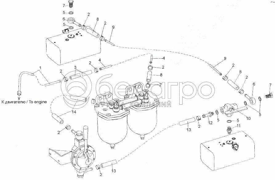 Каталог запасных частей к технике: МЗКТ-7401. Подвод топлива к двигателю