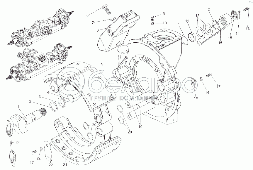 Каталог запасных частей к технике: МЗКТ-7401. Привод тормозов передних мостов