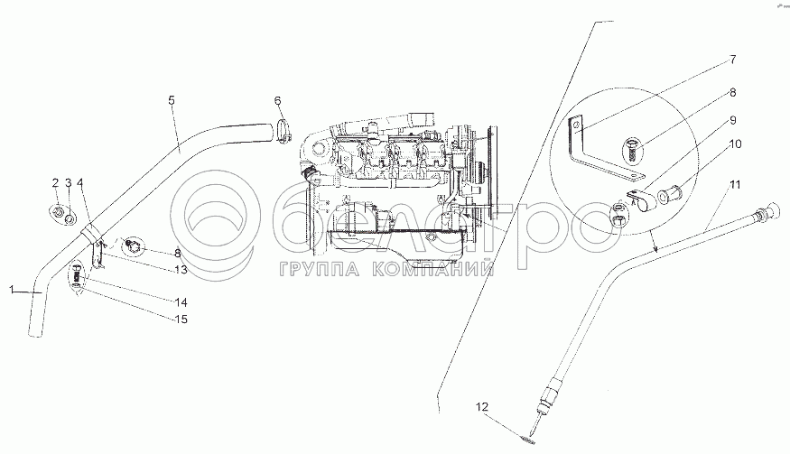 Каталог запасных частей к технике: МЗКТ-7401. Установка агрегатов системы смазки двигателя