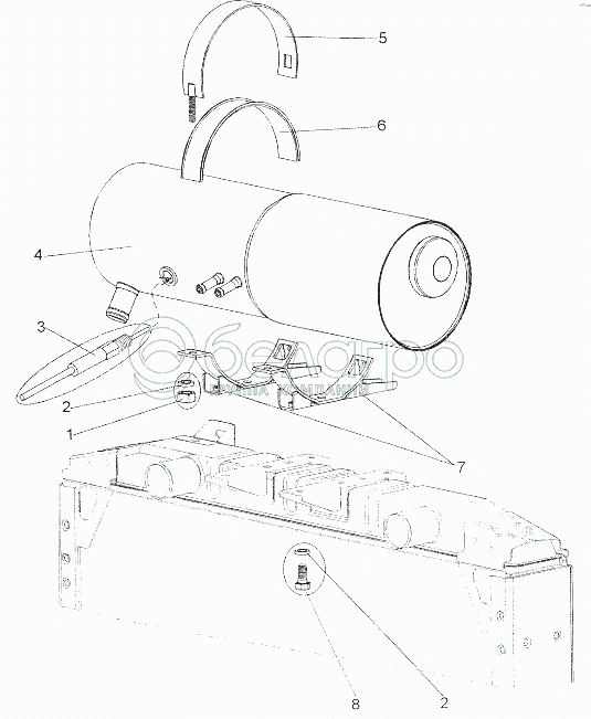 Каталог запасных частей к технике: МЗКТ-7401. Установка бачка расширительного