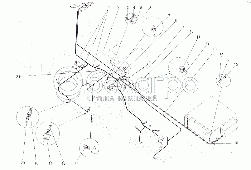 Каталог запасных частей к технике: МЗКТ-7401. Установка электрооборудования двигателя