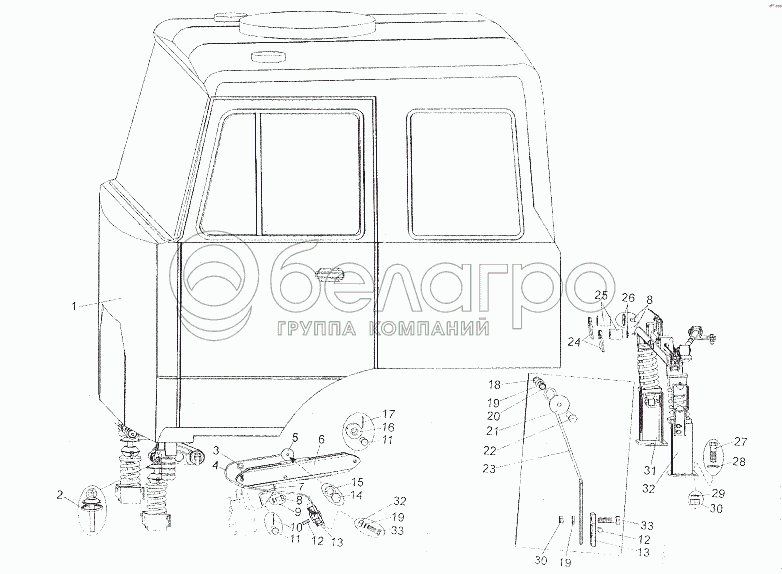 Каталог запасных частей к технике: МЗКТ-7401. Установка кабины