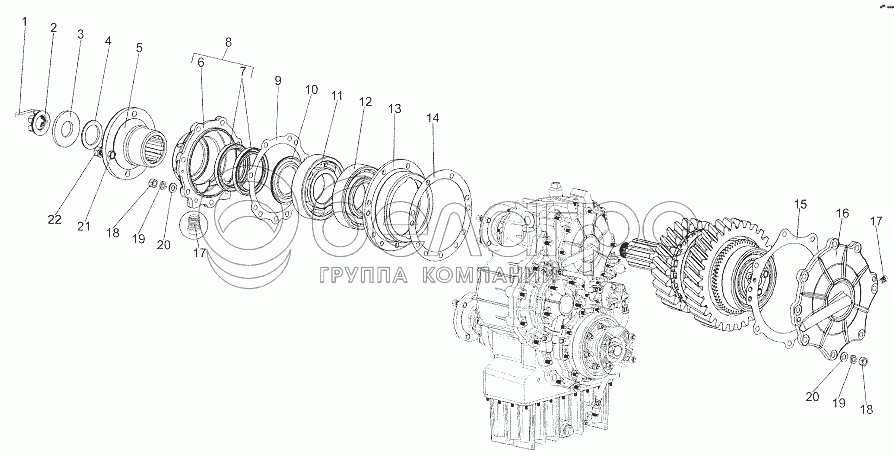 Каталог запасных частей к технике: МЗКТ-7401. Установка ведущего вала