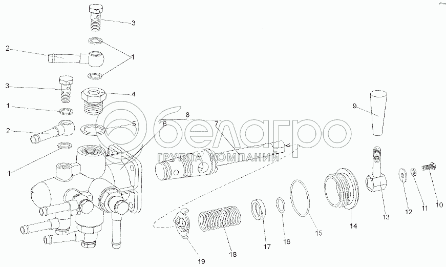 Каталог запасных частей к технике: МЗКТ-7402. Кран топливораспределительный 7401-1116010