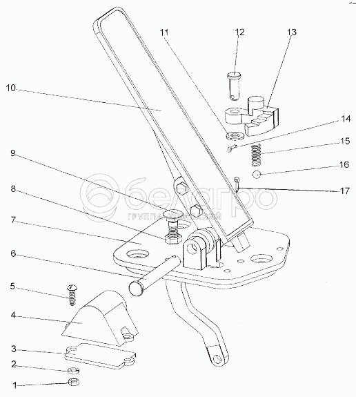 Каталог запасных частей к технике: МЗКТ-7402. Педаль с кронштейном 64221-1108005-10