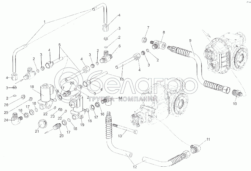 Каталог запасных частей к технике: МЗКТ-7402. Привод управления механизмами блокировки дифференциалов