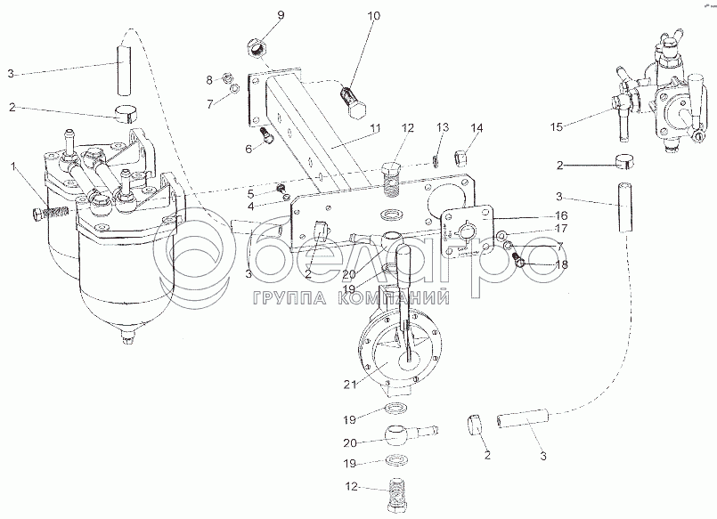Каталог запасных частей к технике: МЗКТ-7402. Установка агрегатов топливной системы