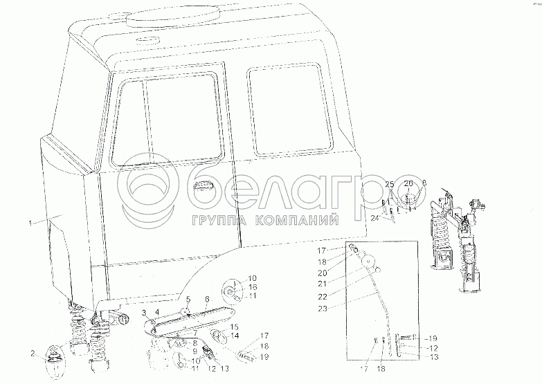 Каталог запасных частей к технике: МЗКТ-7402. Установка кабины