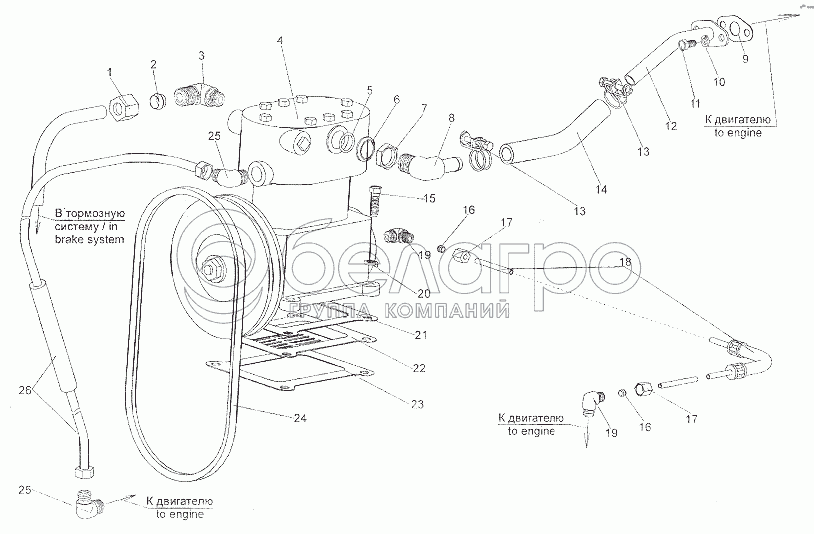 Каталог запасных частей к технике: МЗКТ-7402. Установка компрессора