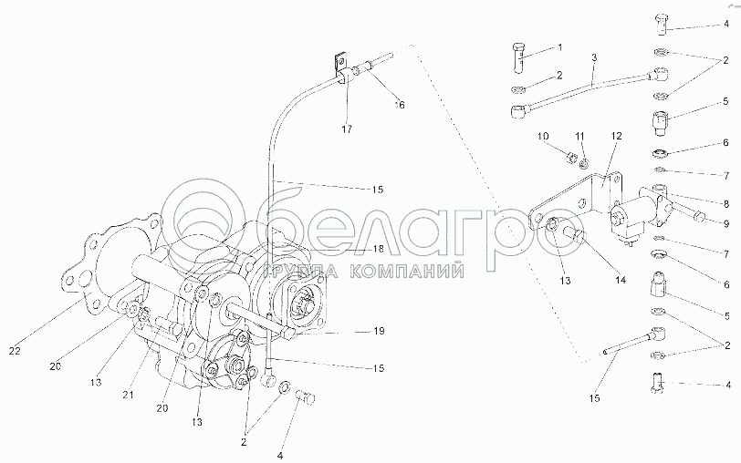Каталог запасных частей к технике: МЗКТ-7402. Установка коробки отбора мощности