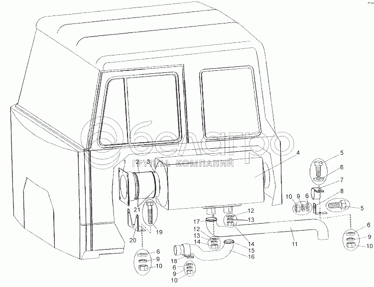 Каталог запасных частей к технике: МЗКТ-7402. Установка отопителя независимого действия