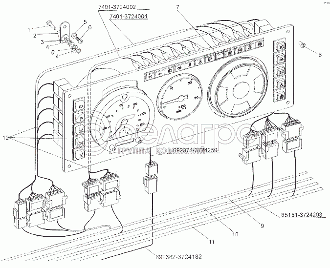 Каталог запасных частей к технике: МЗКТ-7402. Установка панели приборов двигателя