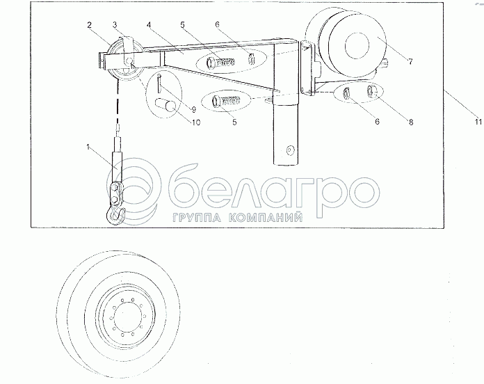 Каталог запасных частей к технике: МЗКТ-7402. Установка подъемника запасного колеса