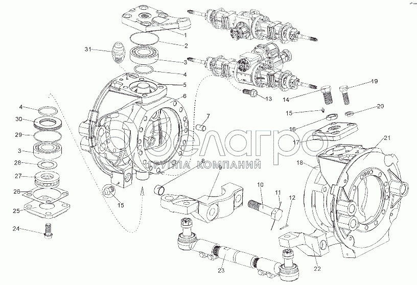 Каталог запасных частей к технике: МЗКТ-7402. Установка поворотного устройства передних мостов