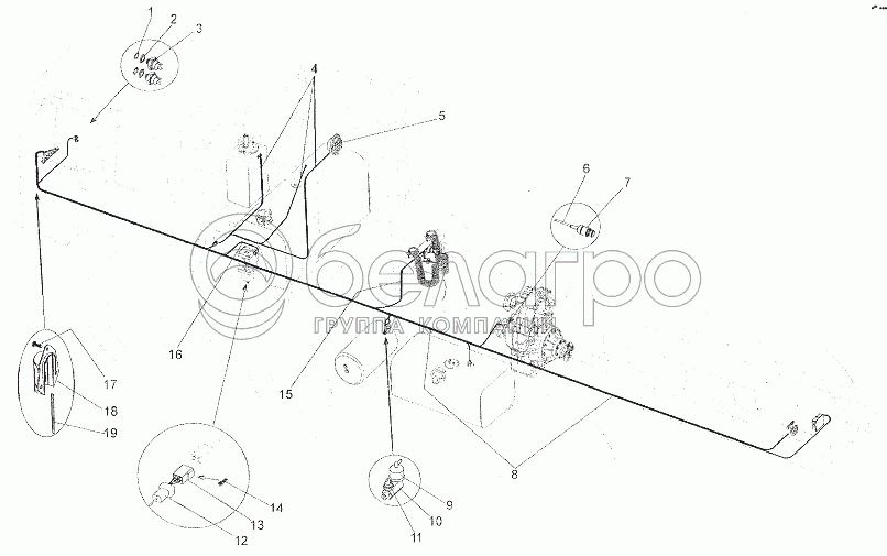 Каталог запасных частей к технике: МЗКТ-7402. Жгуты проводов по левому лонжерону
