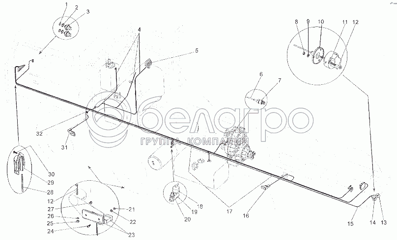 Каталог запасных частей к технике: МЗКТ-7402. Жгуты проводов по левому лонжерону