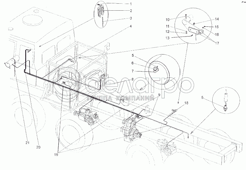 Каталог запасных частей к технике: МЗКТ-7402. Жгуты проводов по правому лонжерону