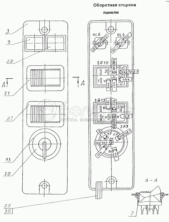 Каталог запасных частей к технике: МЗКТ-74131. Панель переключателей