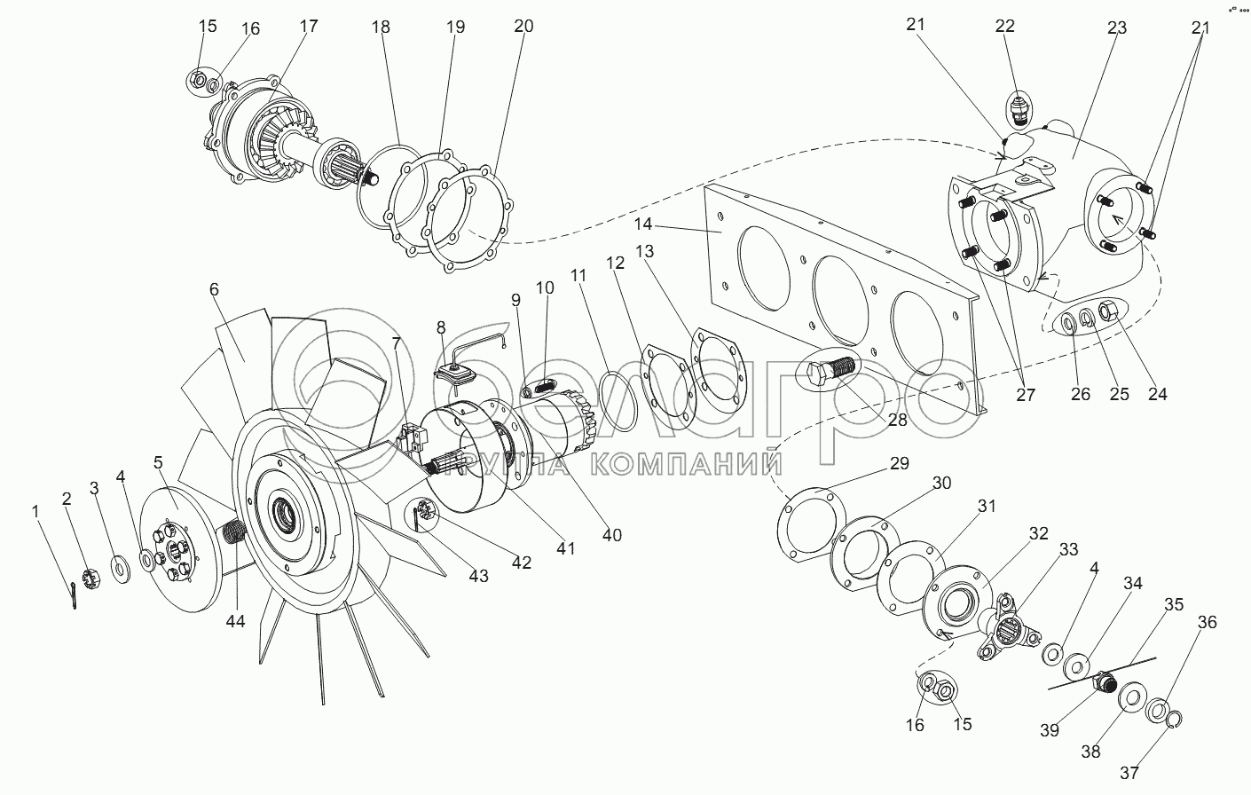 Каталог запасных частей к технике: МЗКТ-74131. Редуктор привода вентилятора 7919-1315311