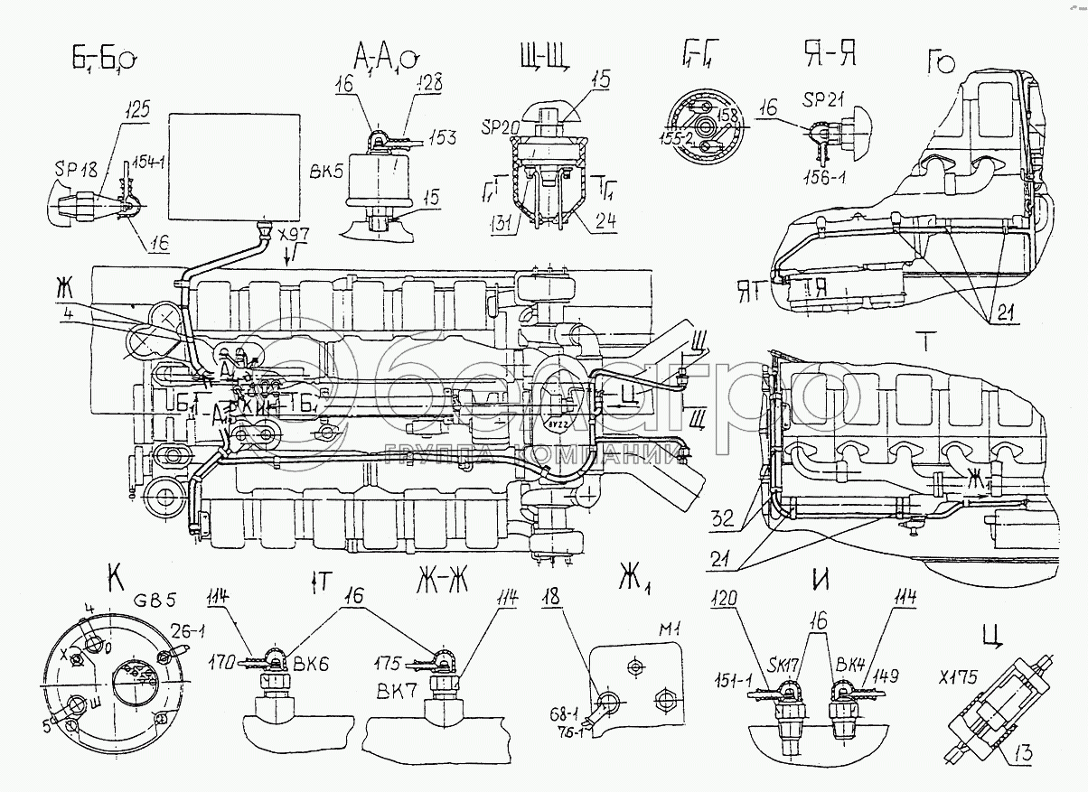 Каталог запасных частей к технике: МЗКТ-74131. Установка электрооборудования двигателя
