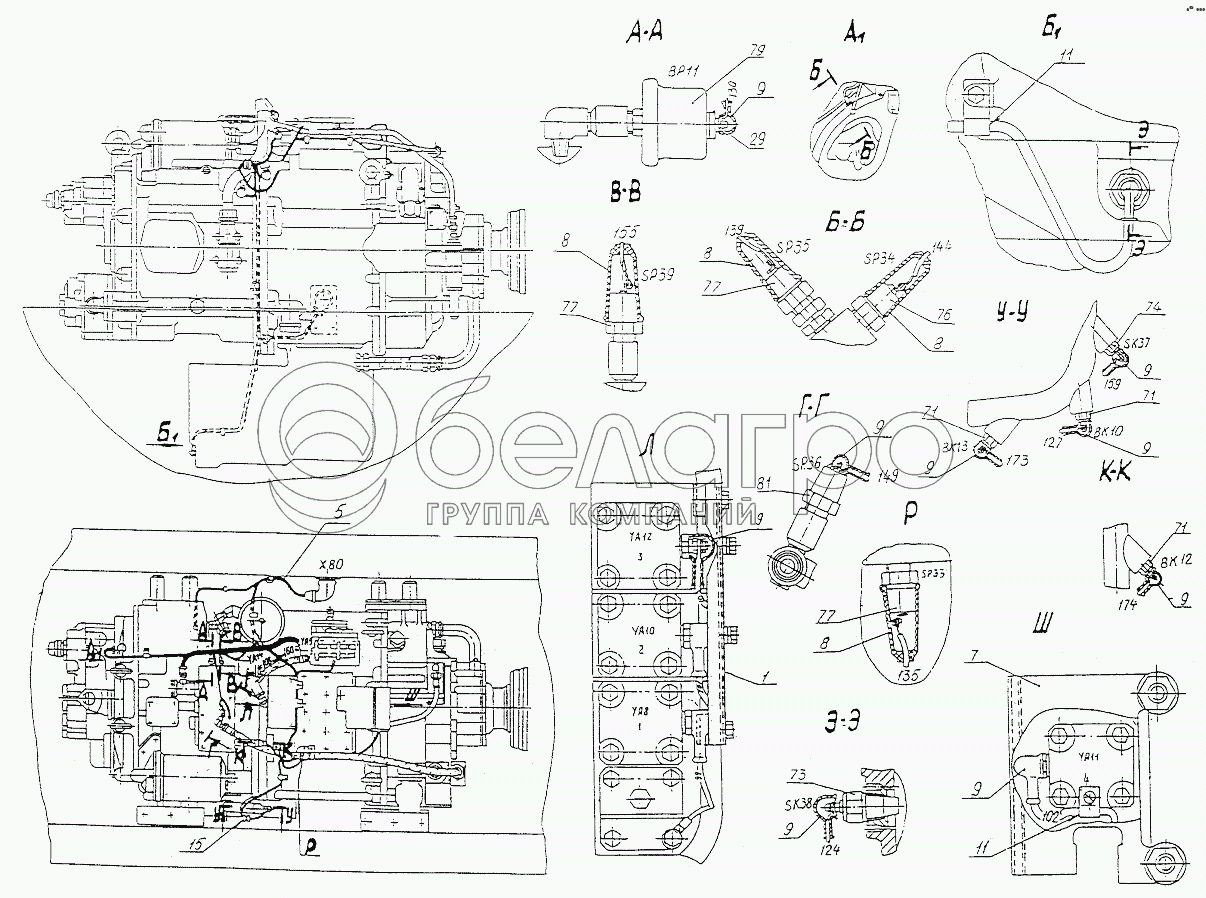 Каталог запасных частей к технике: МЗКТ-74131. Установка электрооборудования на ГМП