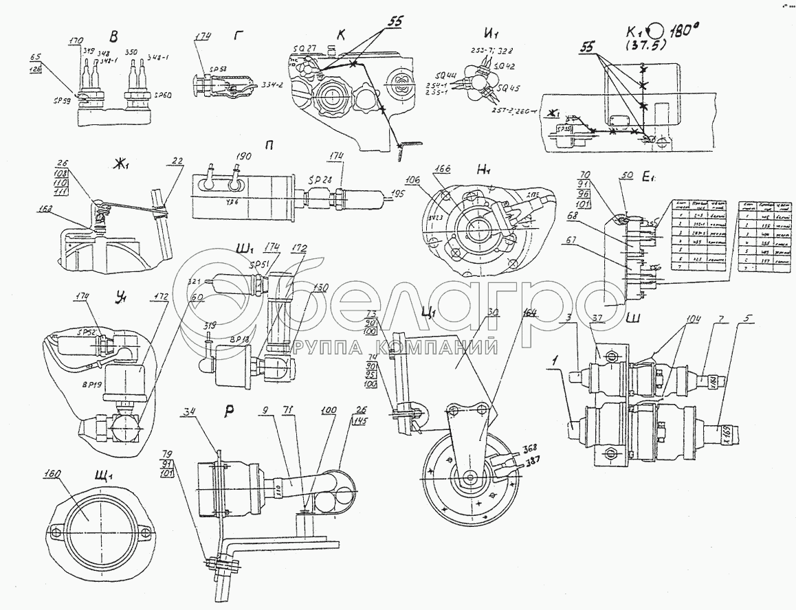 Каталог запасных частей к технике: МЗКТ-74131. Установка электрооборудования на шасси