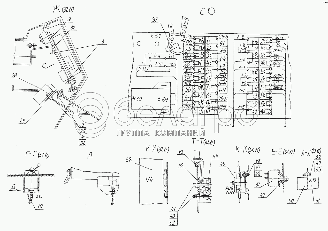 Каталог запасных частей к технике: МЗКТ-74131. Установка электрооборудования в кабине