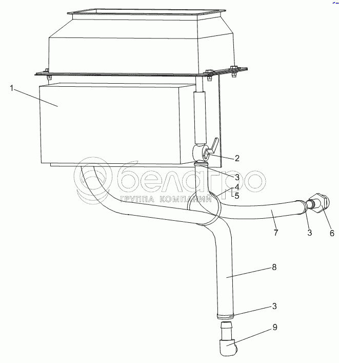 Каталог запасных частей к технике: МЗКТ-74131. Установка трубопроводов отопителя кабины