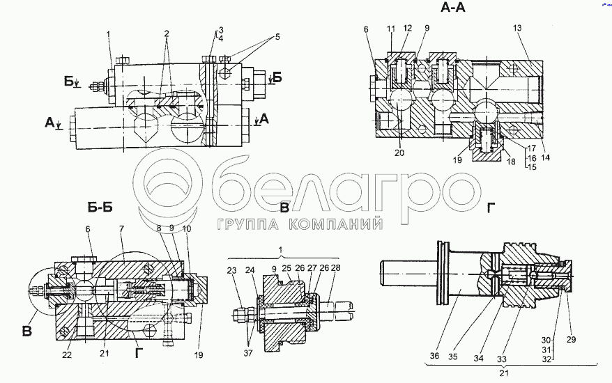 Каталог запасных частей к технике: МЗКТ-74171. Блок клапанов 8021-3420010-10