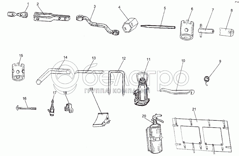 Каталог запасных частей к технике: МЗКТ-74171. Инструмент и принадлежности