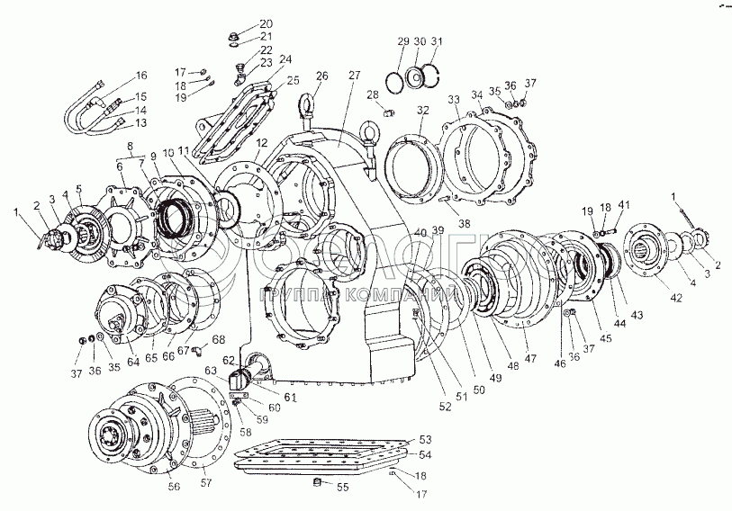Каталог запасных частей к технике: МЗКТ-74171. Картер и детали раздаточной коробки