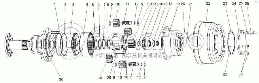 Каталог запасных частей к технике: МЗКТ-74171. Колесная передача переднего моста