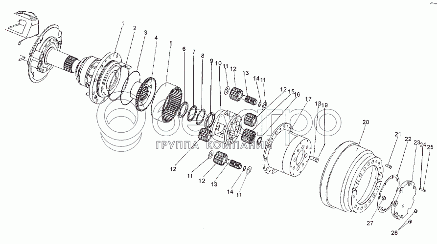 Каталог запасных частей к технике: МЗКТ-74171. Колесная передача заднего и среднего мостов