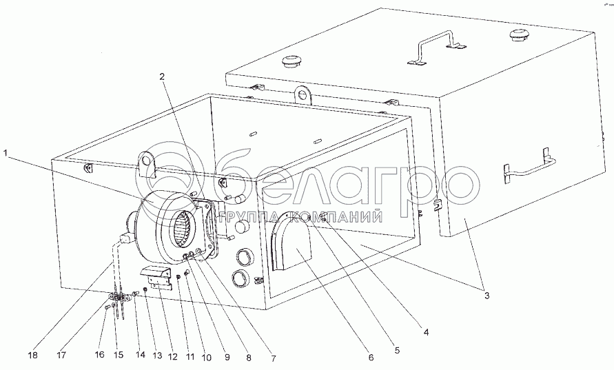 Каталог запасных частей к технике: МЗКТ-74171. Контейнер аккумуляторной батареи 74171-3748002