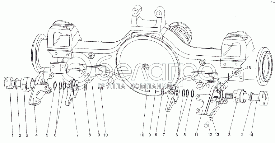 Каталог запасных частей к технике: МЗКТ-74171. Привод тормозов заднего моста