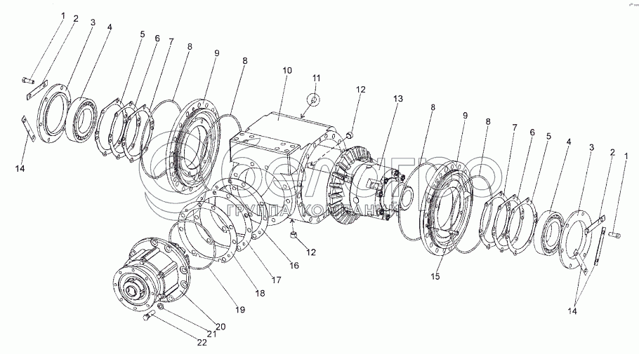 Каталог запасных частей к технике: МЗКТ-74171. Редуктор переднего моста 74171-2302010