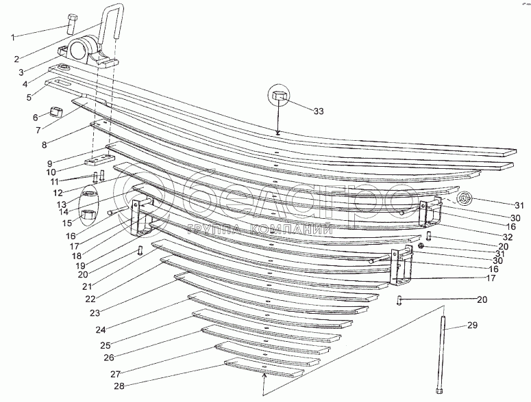 Каталог запасных частей к технике: МЗКТ-74171. Рессора 8007-2912012