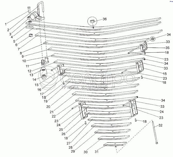 Каталог запасных частей к технике: МЗКТ-74171. Рессора 8007-2912012-01