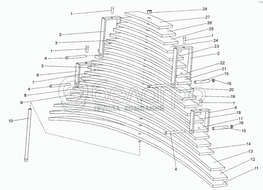 Каталог запасных частей к технике: МЗКТ-74171. Рессора задняя 6525-2912012-10