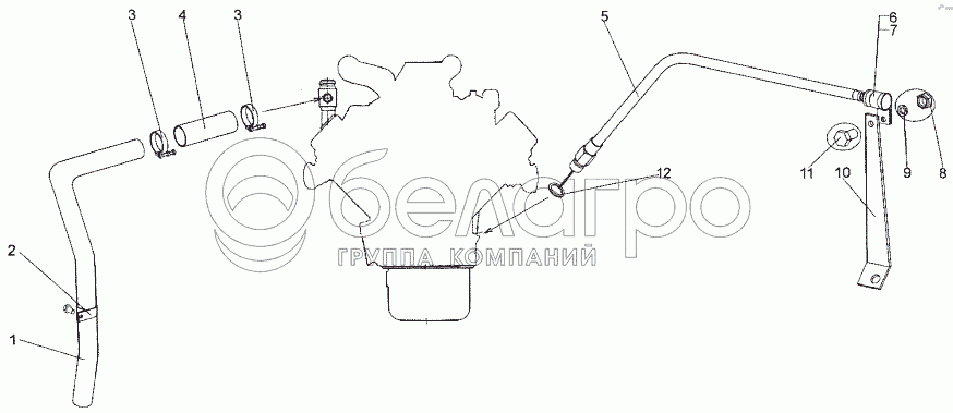 Каталог запасных частей к технике: МЗКТ-74171. Установка агрегатов системы смазки двигателя