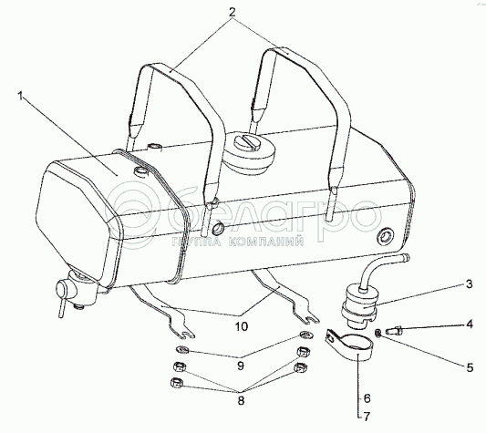 Каталог запасных частей к технике: МЗКТ-74171. Установка бачка расширительного и редукционного клапана