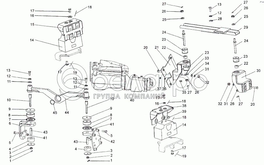 Каталог запасных частей к технике: МЗКТ-74171. Установка двигателя