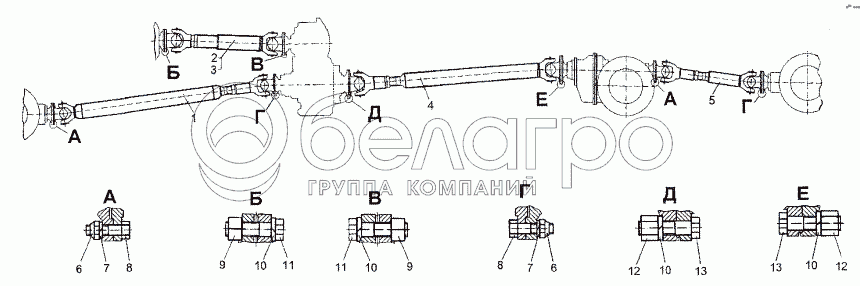 Каталог запасных частей к технике: МЗКТ-74171. Установка карданных валов
