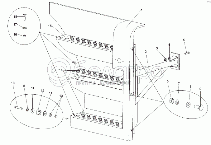 Каталог запасных частей к технике: МЗКТ-74171. Установка подножек