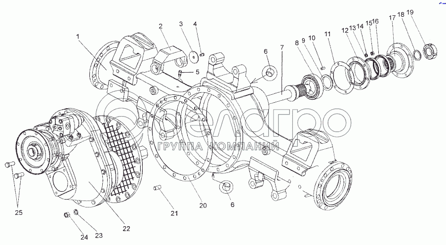 Каталог запасных частей к технике: МЗКТ-74171. Установка редуктора среднего моста