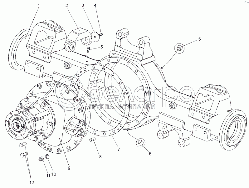 Каталог запасных частей к технике: МЗКТ-74171. Установка редуктора заднего моста