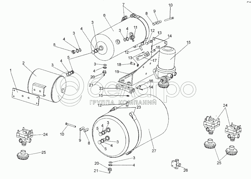 Каталог запасных частей к технике: МЗКТ-74171. Установка ресиверов и аппаратов
