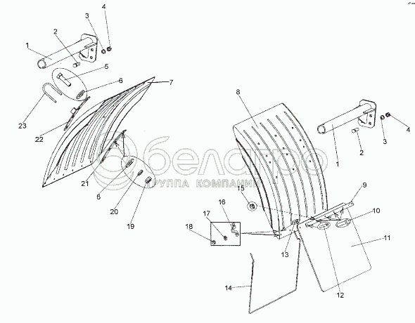 Каталог запасных частей к технике: МЗКТ-74171. Установка задних крыльев