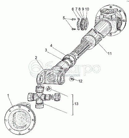 Каталог запасных частей к технике: МЗКТ-74171. Вал карданный 80071-2227010