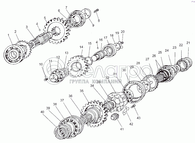 Каталог запасных частей к технике: МЗКТ-74171. Валы и шестерни раздаточной коробки